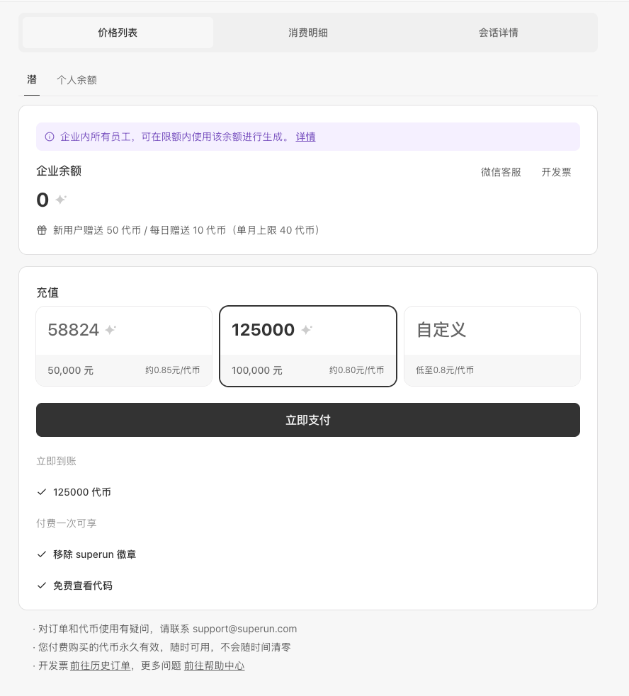 - 全新充值页面上线,采用阶梯计价模式,购买额度越多单价越优惠。